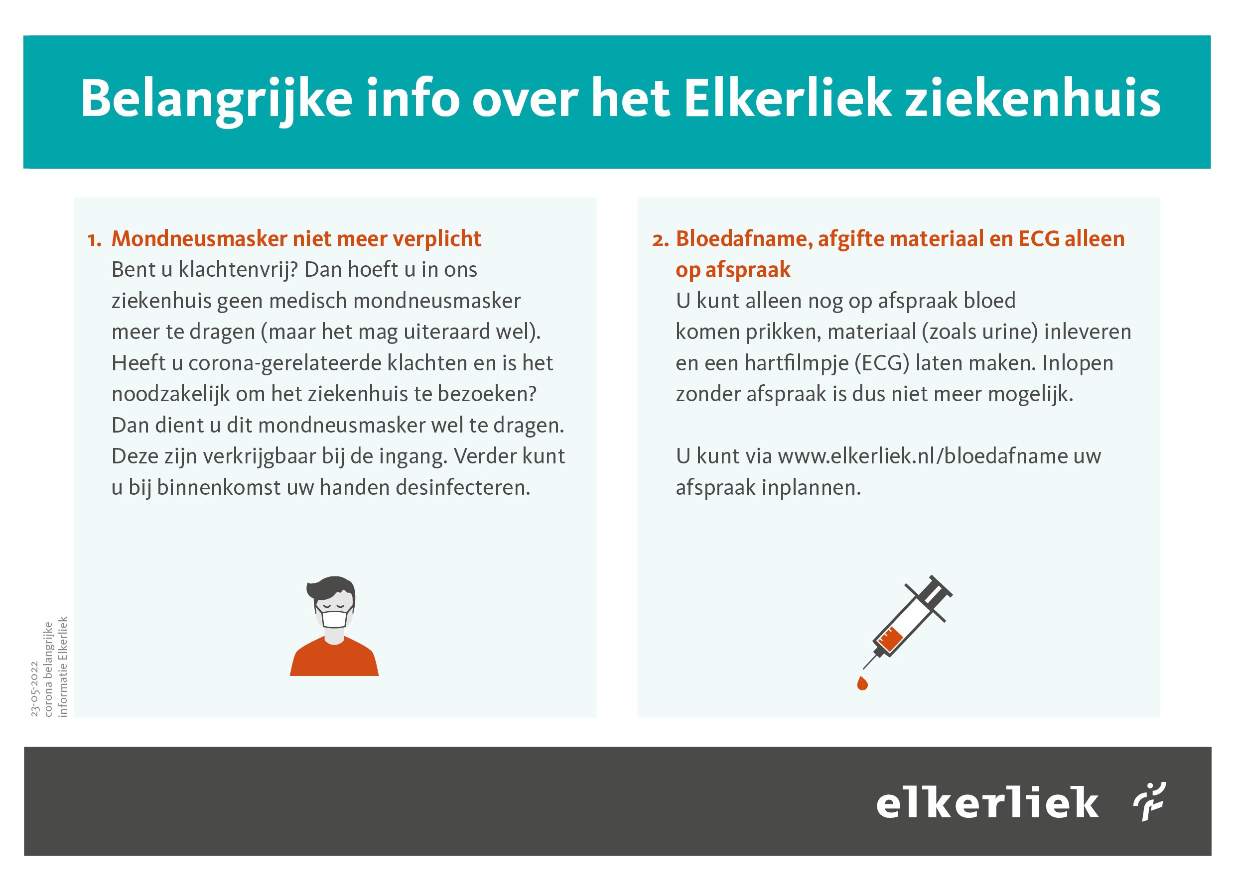 Vanaf dinsdag 3 maart 2026 informeren we u op een nieuwe en grotendeels digitale manier over uw poliklinische afspraken. U ontvangt uw informatie voortaan via e‑mail en in MijnElkerliek. Zo heeft u alles overzichtelijk bij elkaar en kunt u zich beter voorbereiden.
